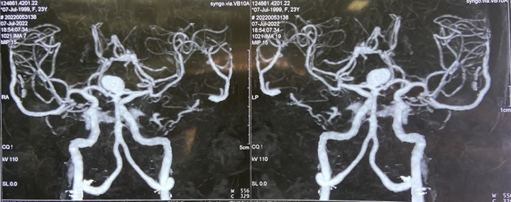 - CT brain and angiography revealed a ruptured basilar apex aneurysm.